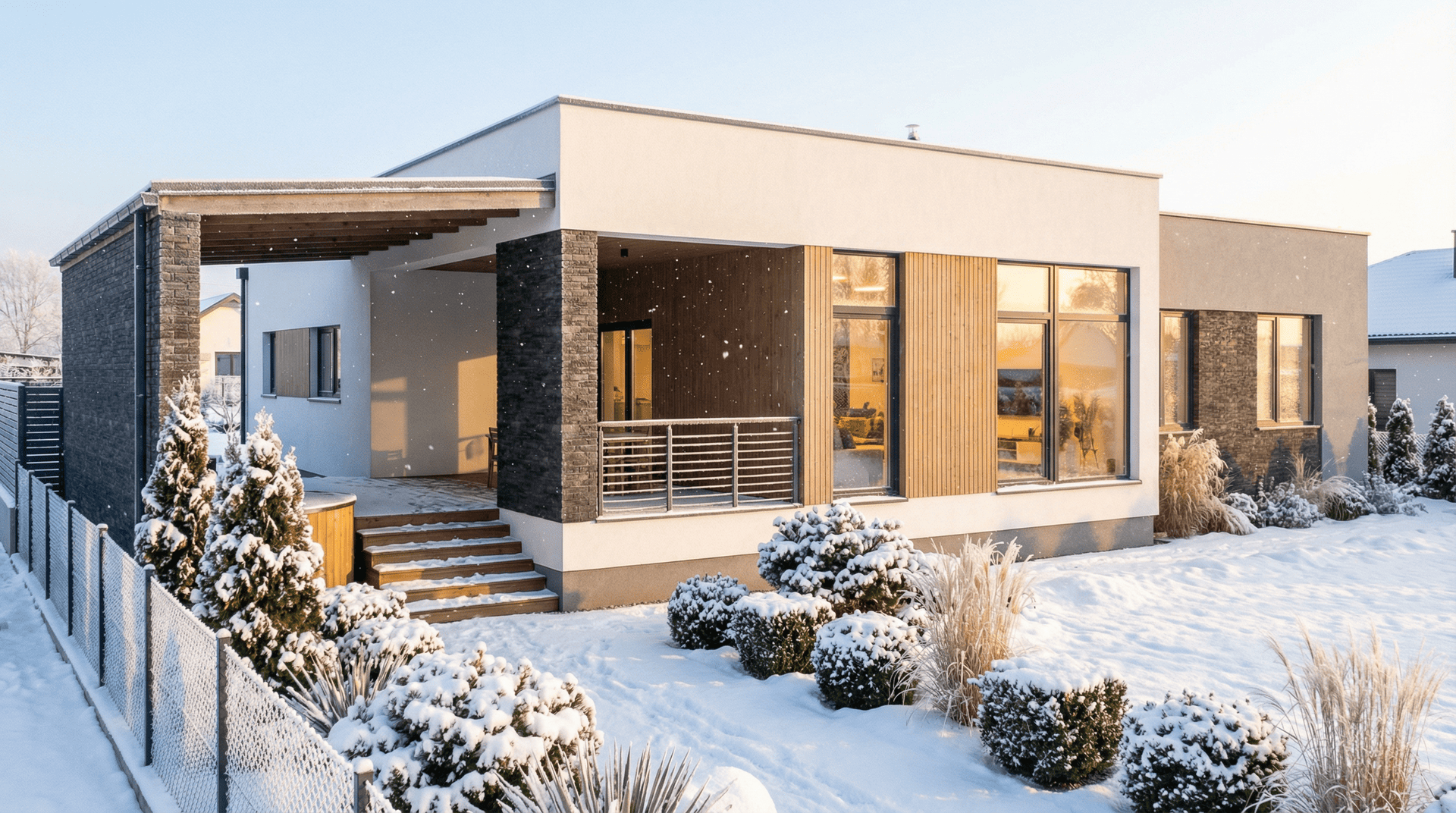 Стильный дом для небольшой семьи — это идеальное сочетание комфорта и уединения, гармонично вписывающееся в окружающую природу. Использование природных материалов для отделки, таких как дерево и камень, создает атмосферу тепла и уюта, подчеркивая связь с природой.