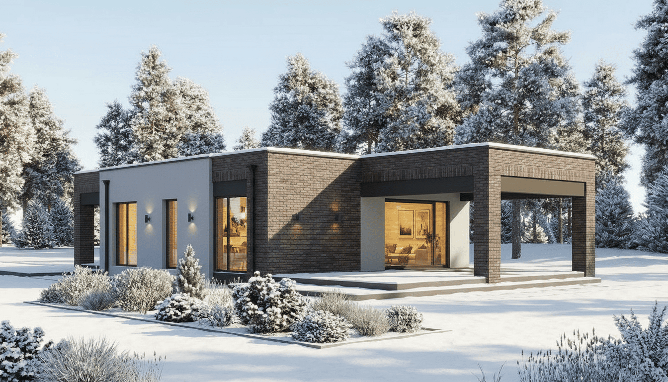 Уютный одноэтажный дом с плоской кровлей. Имеет четкое и продуманное зонирование на общую (гостевую) и хозяйскую (спальную) зоны. Отлично подойдет для комфортного проживания и отдыха семьи из 3-5 человек.
