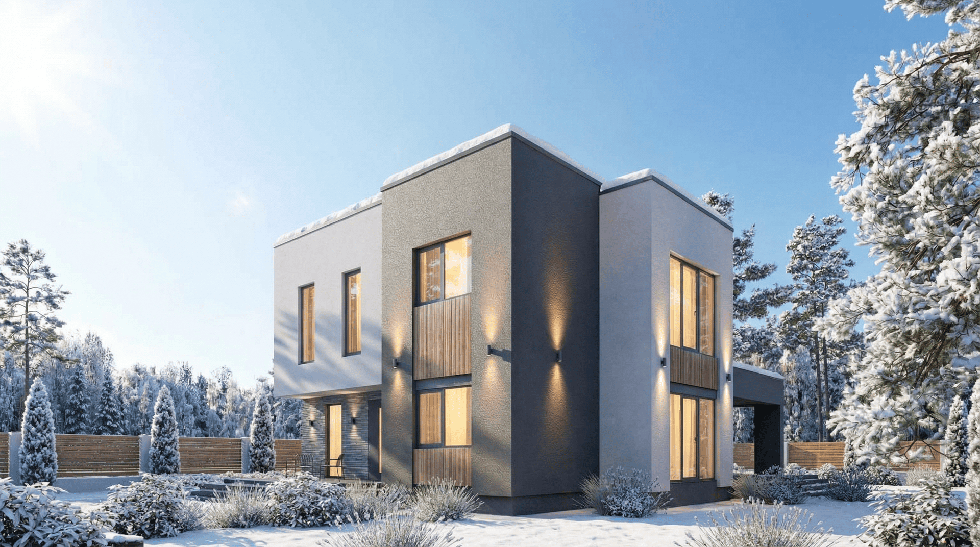 Современный дом со плоской кровлей. Компактный, уютный и эргономичный, имеющий все необходимое для комфортного круглогодичного или временного проживания. Помещения разделены на гостевую и спальную зоны. Широкие, комфортные крыльцо и терраса накрыты плоской кровлей. Из гостиной предусмотрен выход на просторную террасу. Проект имеет зеркальный вариант планировки, что позволяет разместить его на участке с любой ориентацией по сторонам света, а сдержанный современный стиль легко впишется в любую окружающую застройку.
