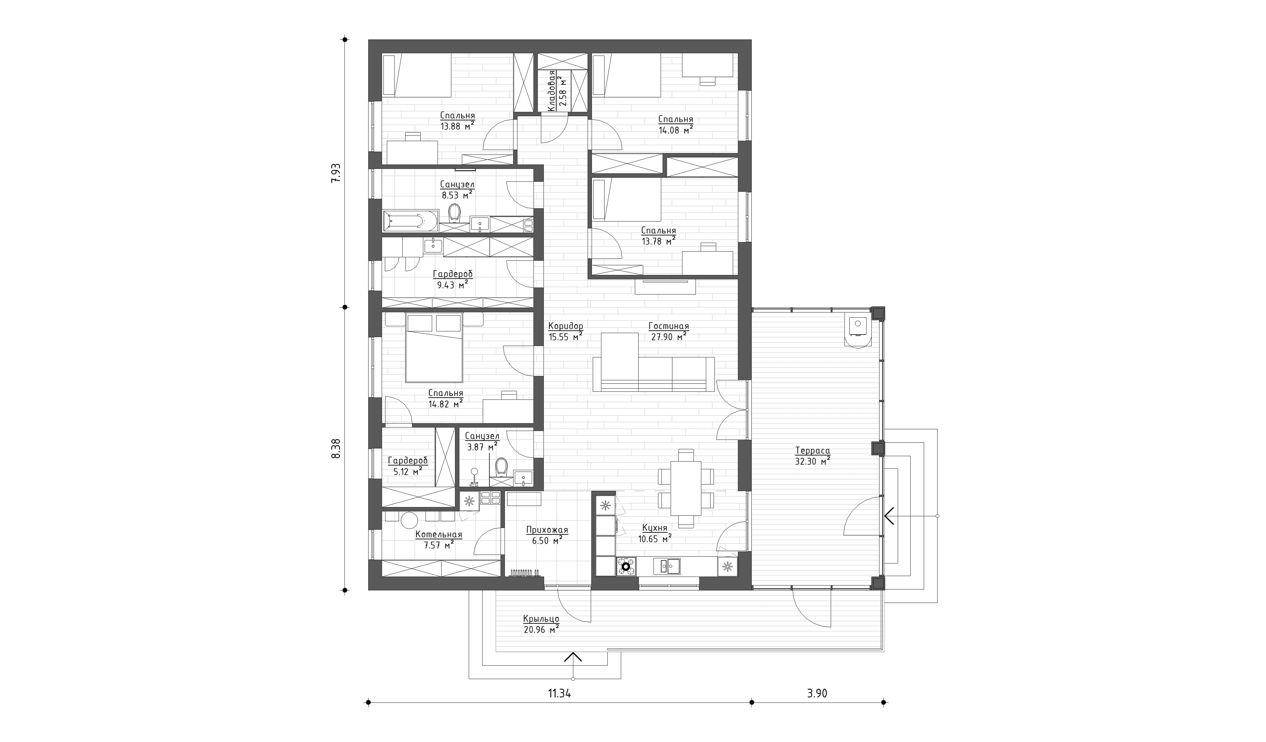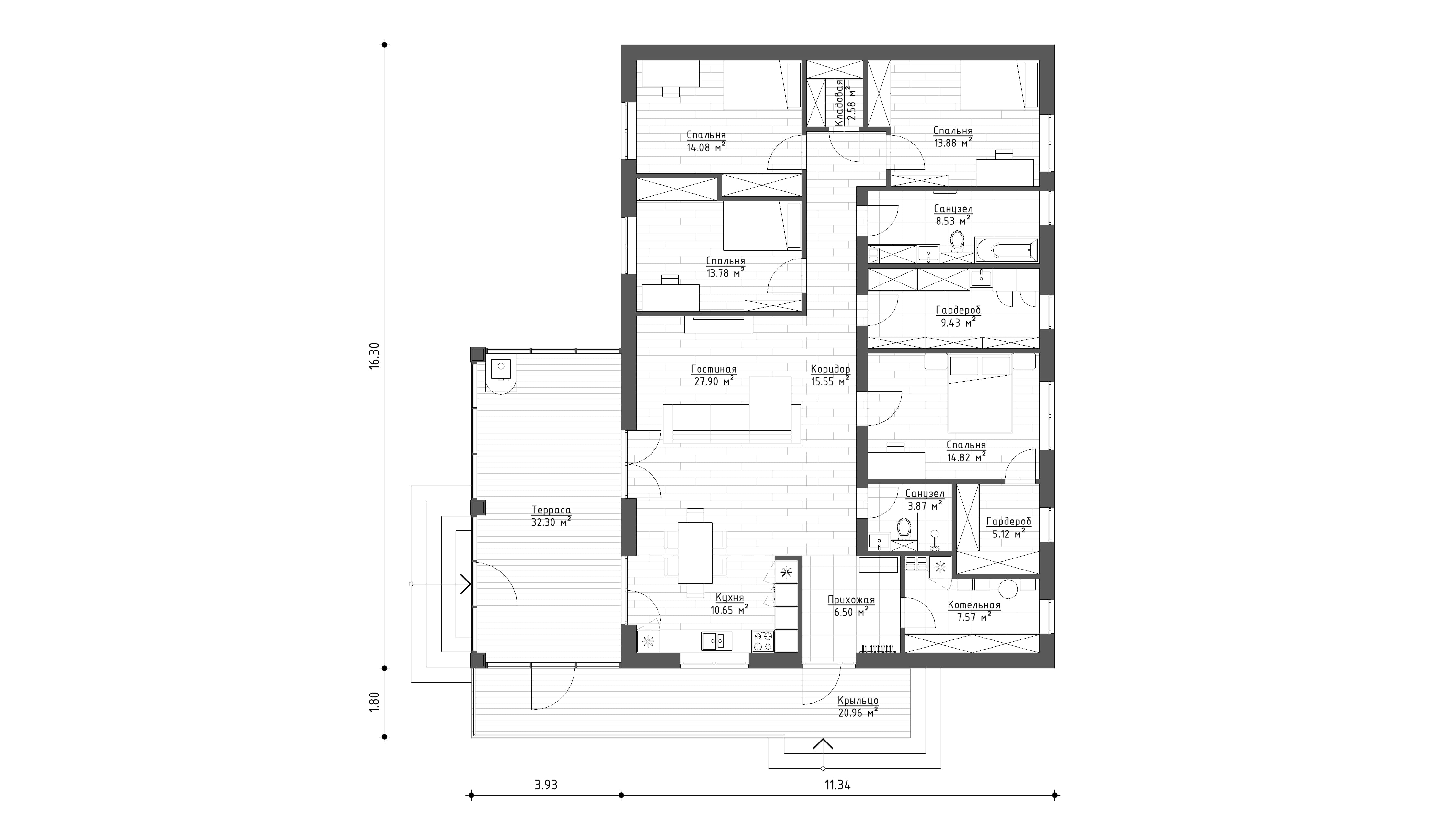 - Мастер-спальня с гардеробной