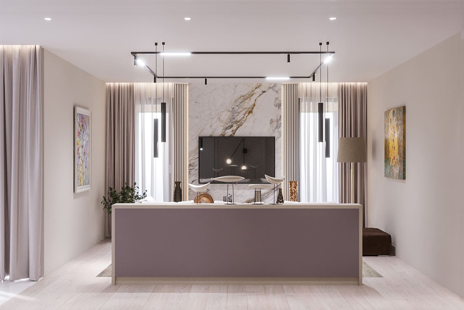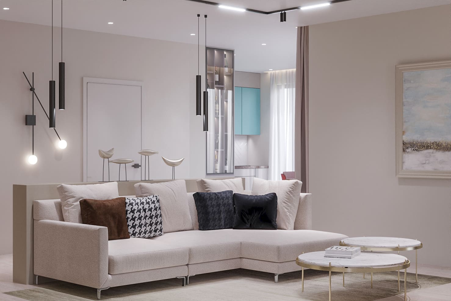 - Гостиная с открытой кухней