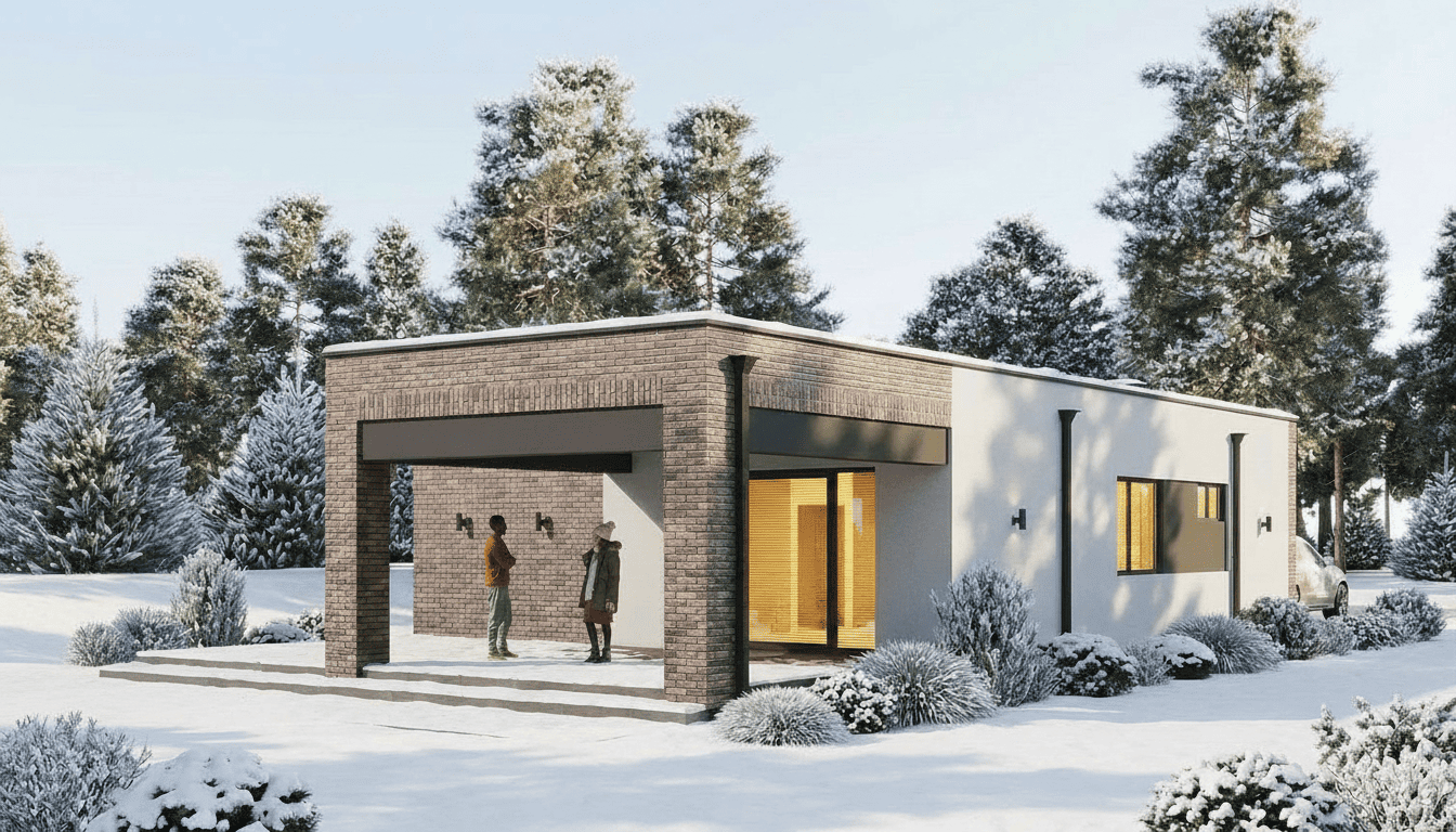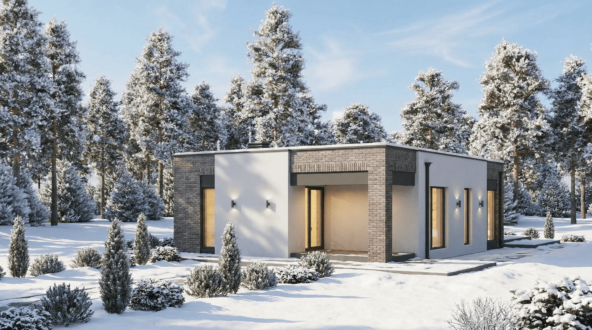 Уютный одноэтажный дом с плоской кровлей. Имеет четкое и продуманное зонирование на общую (гостевую) и хозяйскую (спальную) зоны. Отлично подойдет для комфортного проживания и отдыха семьи из 3-5 человек.