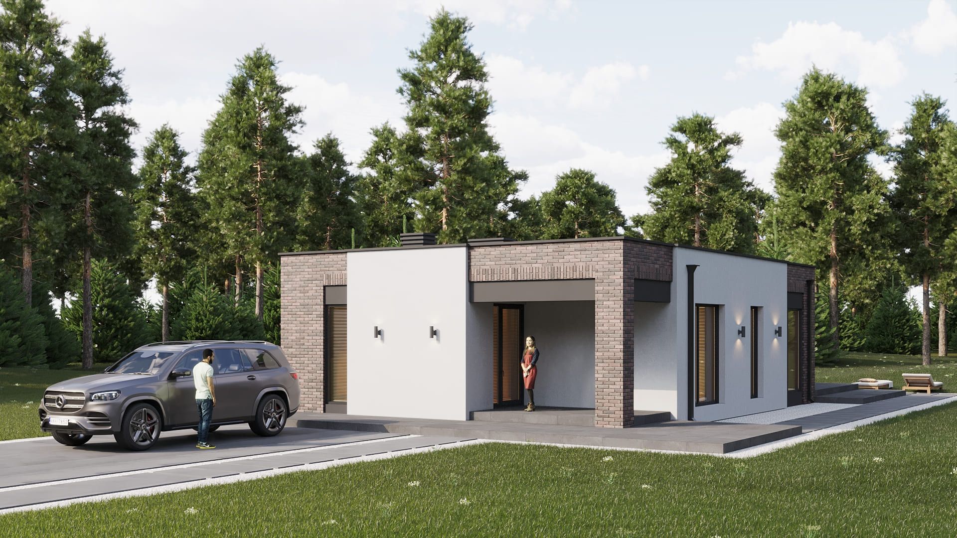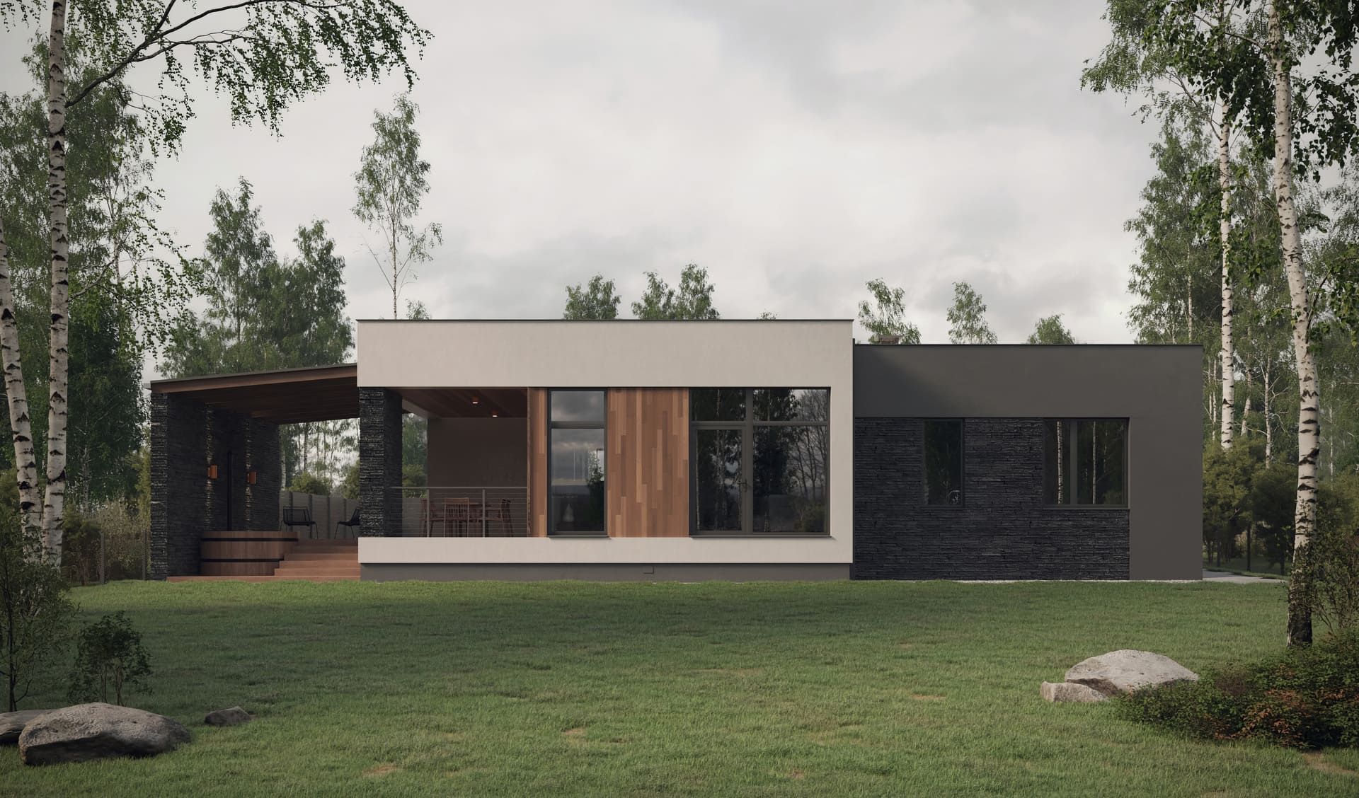 Проект «Обсидиан» — компактное решение для небольшой семьи: одноэтажный дом с минималистичной архитектурой.